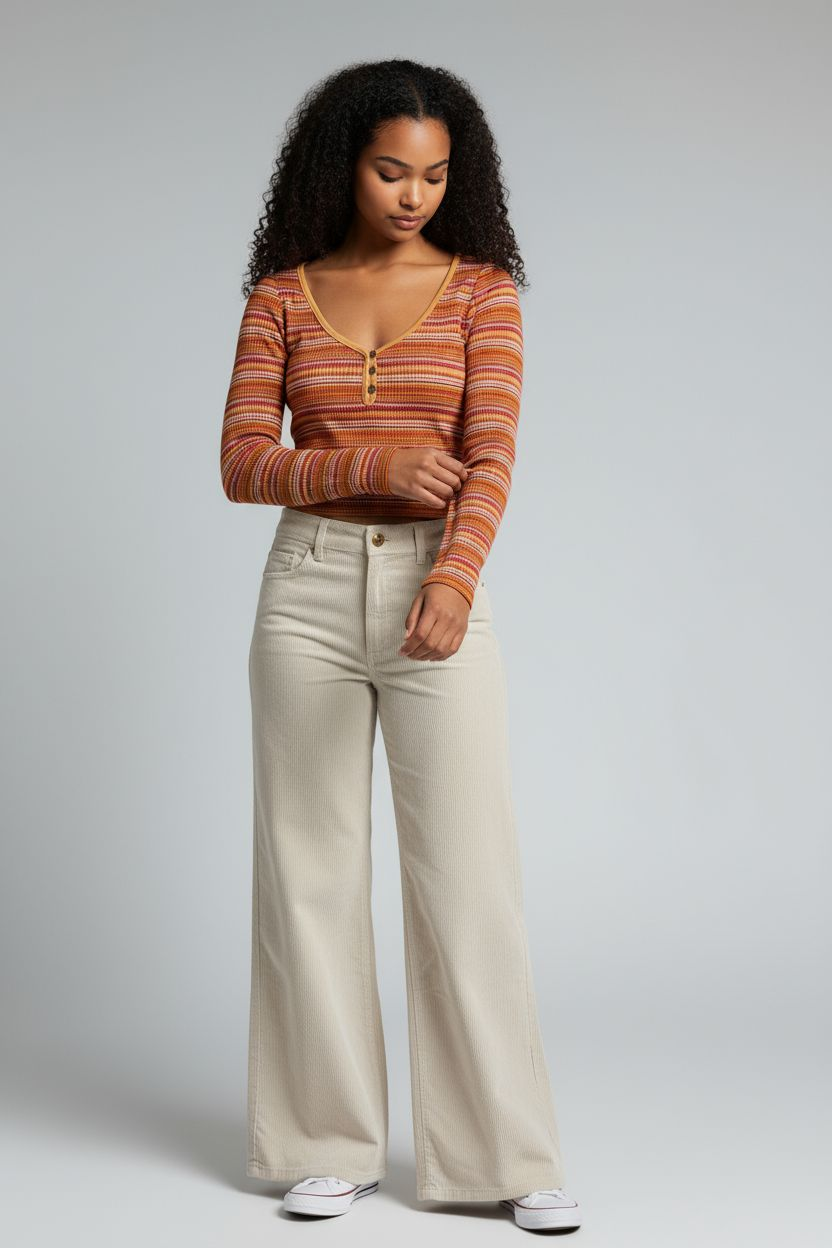 Design et couleurs : Rayures colorées pour un look joyeux et moderne, parfait pour les journées décontractées ou les superpositions stylées.